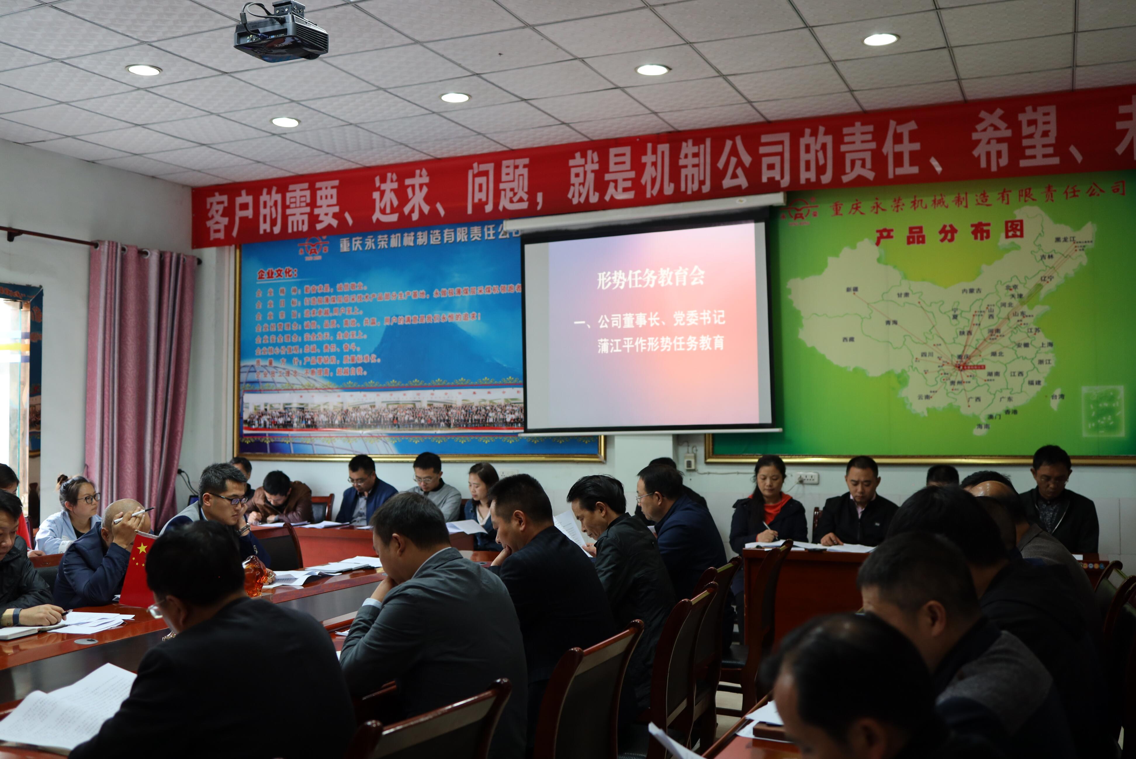 2019年10月21日,機制公司開展形勢任務教育,公司董事長蒲江平同志作形勢任務報告,監(jiān)事會主席黃清華同志作重要講話 。