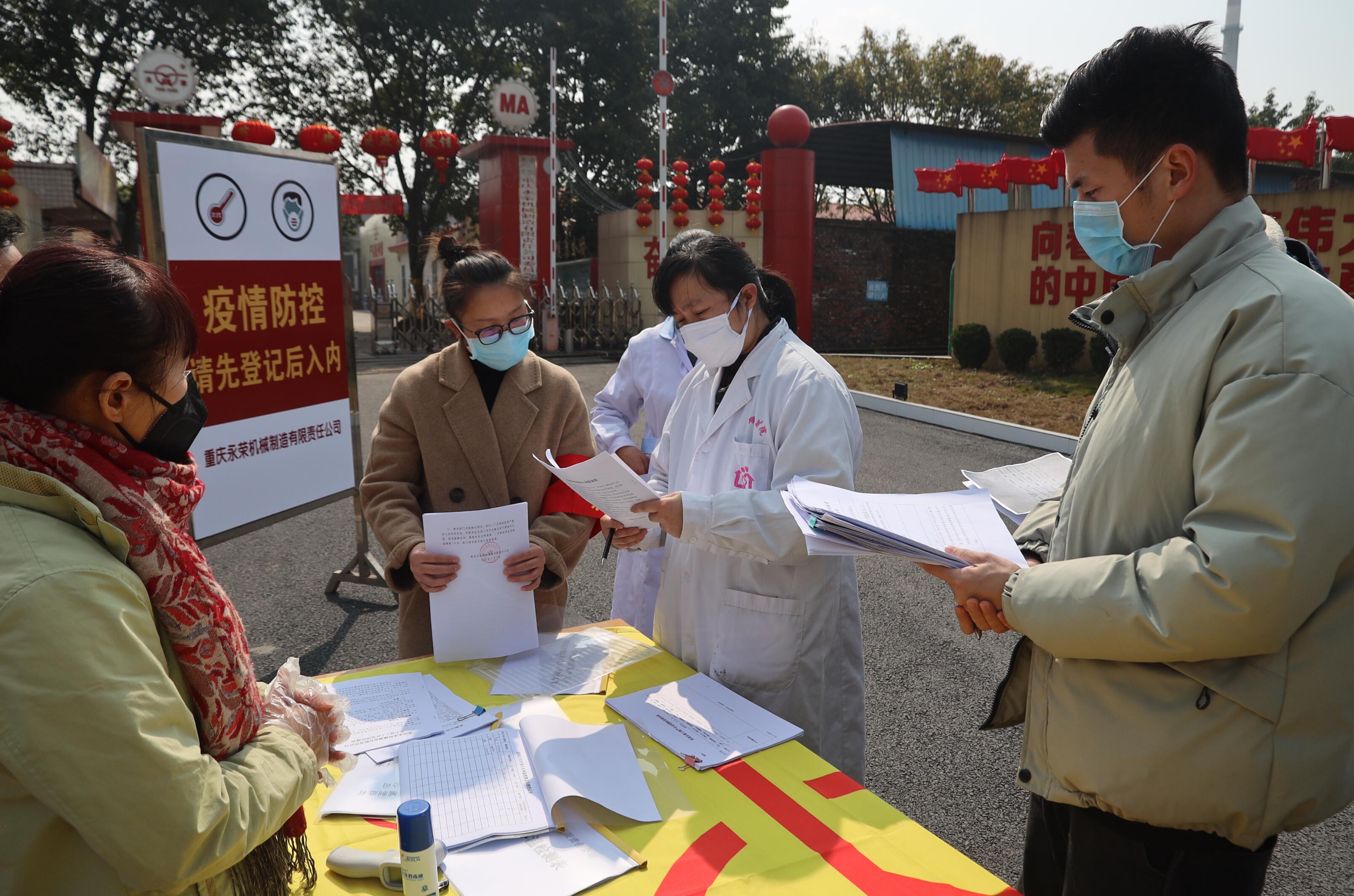 2020年2月11日下午,榮昌區(qū)經(jīng)信委唐溢會同昌元街道、廣順街道、雙河街道社區(qū)衛(wèi)生服務(wù)中心科長一行四人來到重慶永榮機制公司執(zhí)行企業(yè)復(fù)工驗場,該公司董事長、黨委書記蒲江平到廠接受驗收檢查。