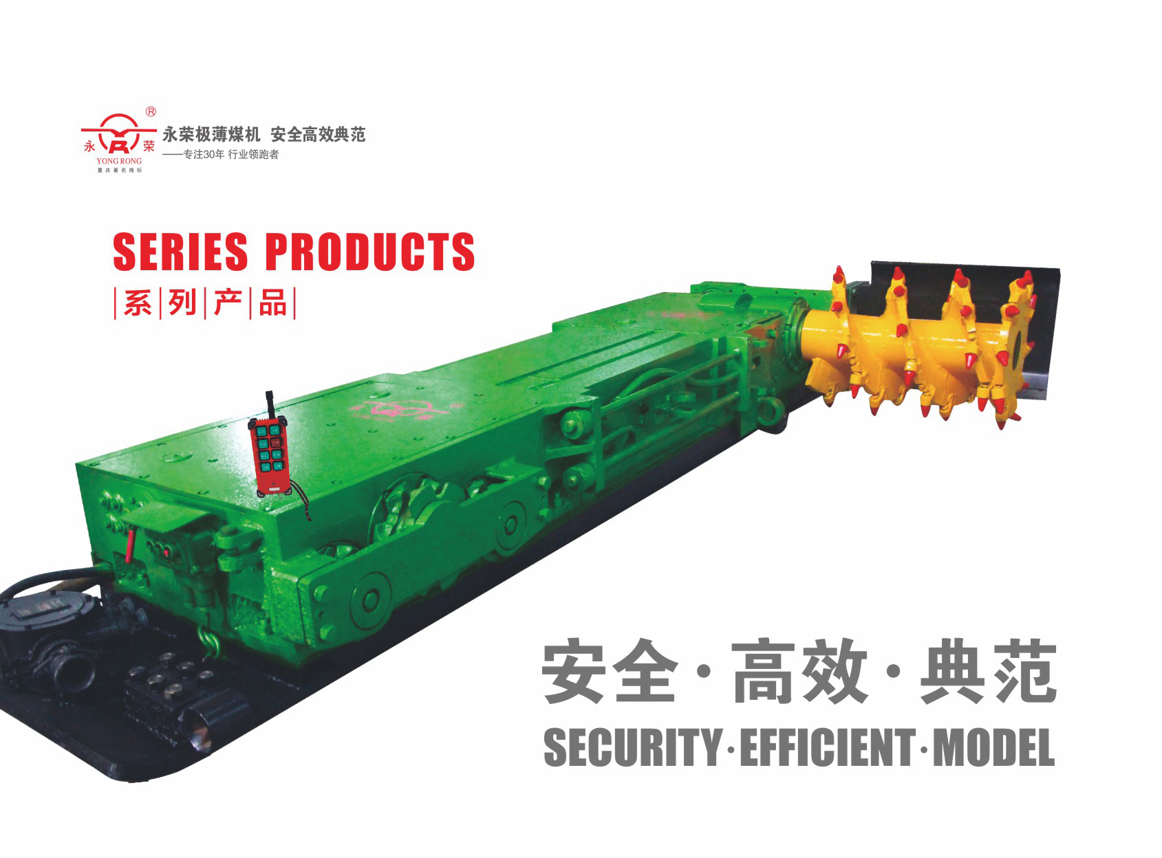 20世紀(jì)70年代初期,為解決永榮礦業(yè)公司極薄煤層機(jī)械化開采的難題。重慶永榮機(jī)械制造有限責(zé)任公司在永榮礦業(yè)公司的主持下,堅持不懈的致力于極薄煤層采煤機(jī)的研究、開發(fā)和制造。不斷突破各種技術(shù)難題,形成了YRG1型、YRG2型系列采煤機(jī)機(jī)型,基本實現(xiàn)了極薄煤層條件下的機(jī)械化開采。自20世紀(jì)90年代以來,不斷總結(jié)本礦區(qū)20余年機(jī)械化采煤經(jīng)驗,在充分吸取國內(nèi)外采煤機(jī)制造先進(jìn)技術(shù)的基礎(chǔ)上,通過多次的工業(yè)性試驗、改進(jìn)和完善,于2000年完成了YRG3新型極薄煤層采煤機(jī)的研制定型為MG100-TP,其技術(shù)性能滿足了賦存條件在0.45m~0.95m和頂、底板軟硬變化的極薄煤層開采的需要。